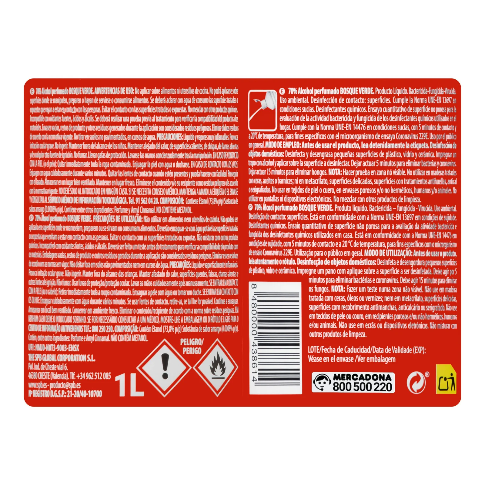 70% Alcohol de Limpieza Perfumado Bosque Verde es un producto de limpieza del hogar seleccionado dentro de la sección Limpieza muebles y multiusos de nuestro Mercado Español. Pensado para españoles que viven fuera y quieren seguir usando sus productos de siempre, y para clientes europeos que valoran la calidad y eficacia de la limpieza ‘a la española’.