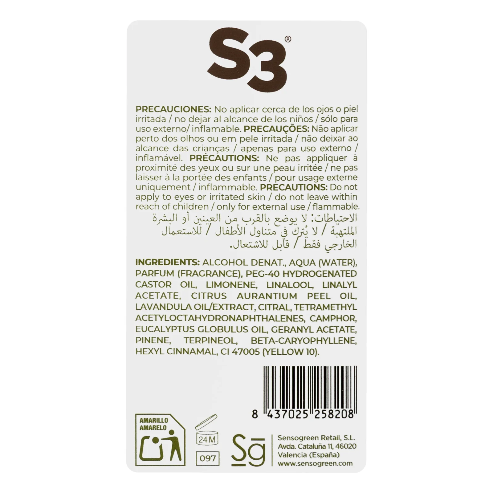 Agua de colonia S3 Mediterránea, pensado para tu higiene y cuidado personal de cada día. Fácil de usar y adecuado para la rutina habitual.