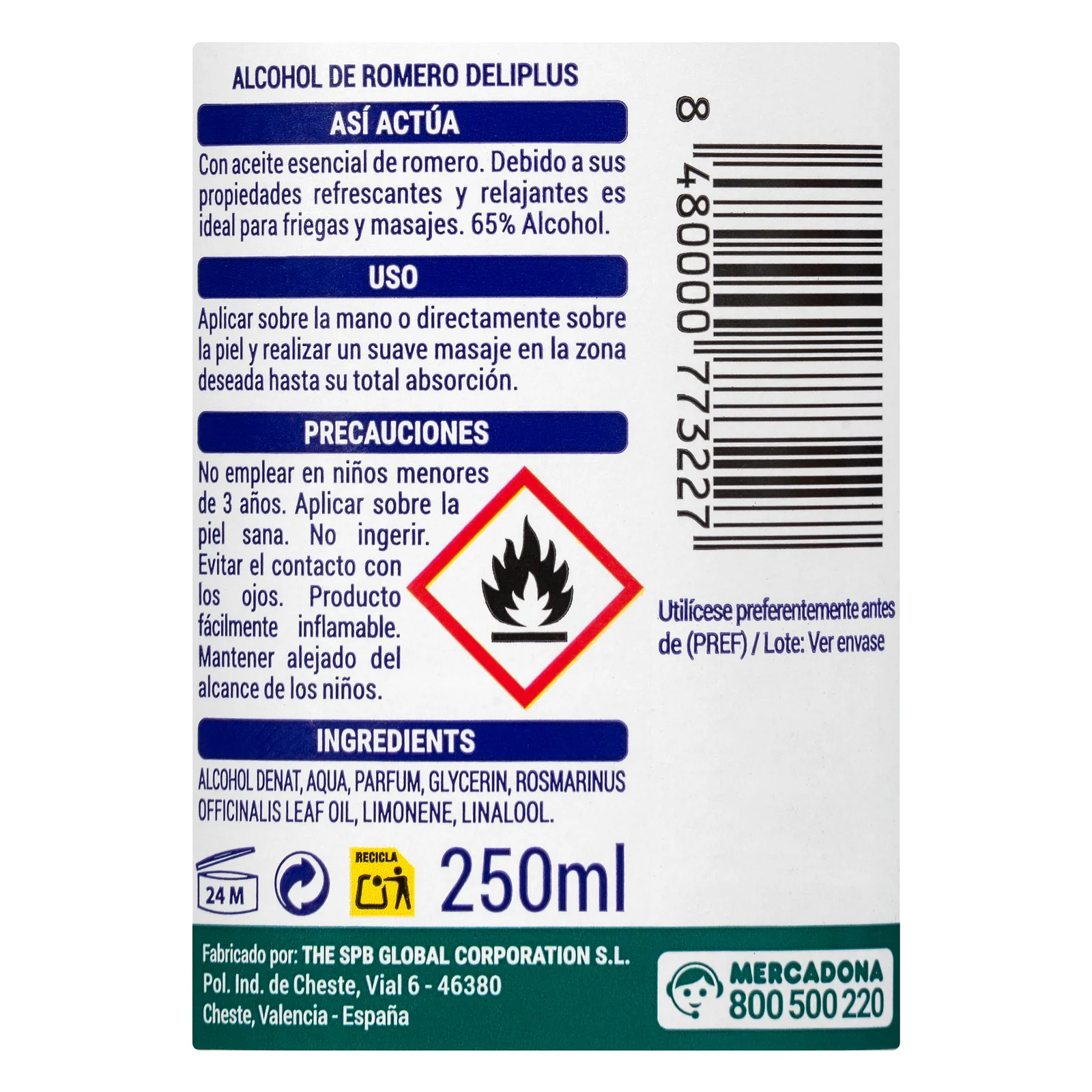 Alcohol de romero Deliplus con calidad del mercado español.