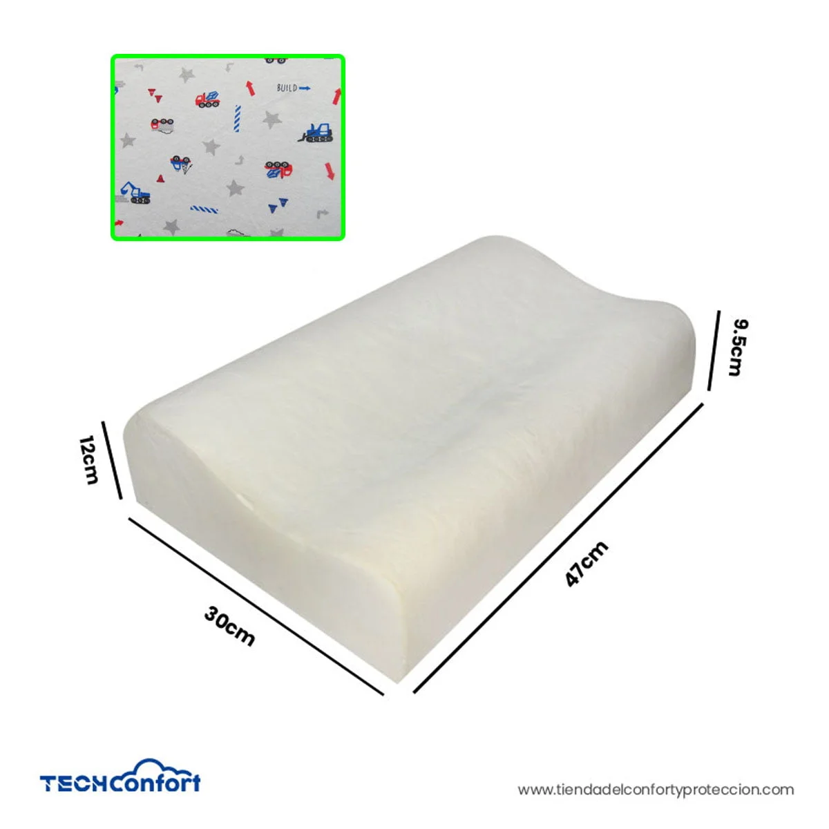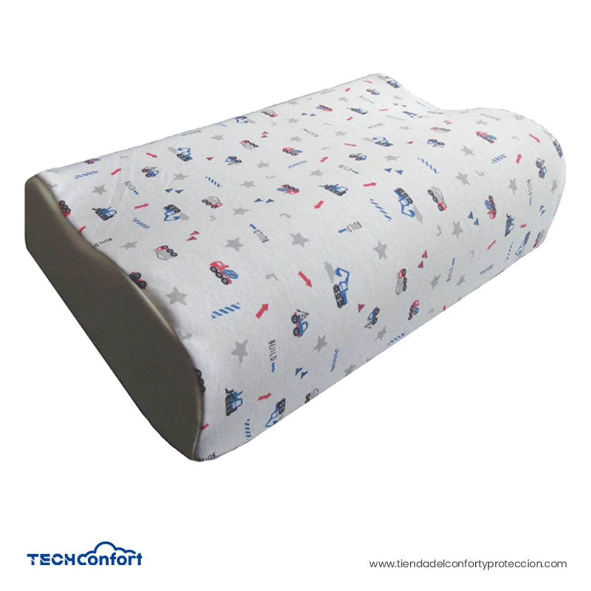 Almohada infantil fabricada en espuma viscoelástica memory foam, suave y con forma cervical. Con diseño infantil en su funda protectora.