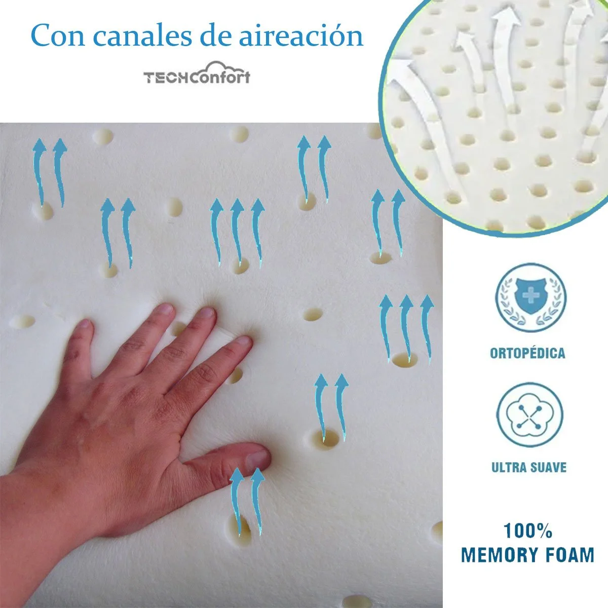 Conoce la tecnología aquí: Espuma memory foam, Canales de ventilación.