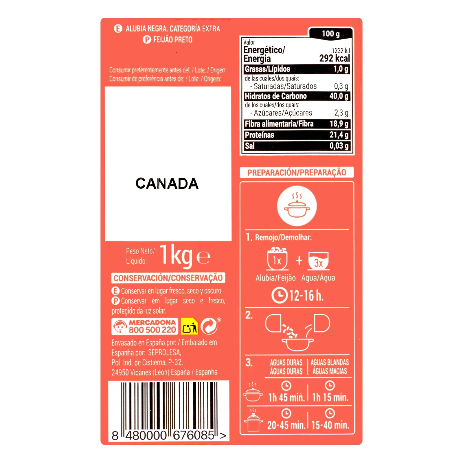 Alubia negra Hacendado típico del mercado español.