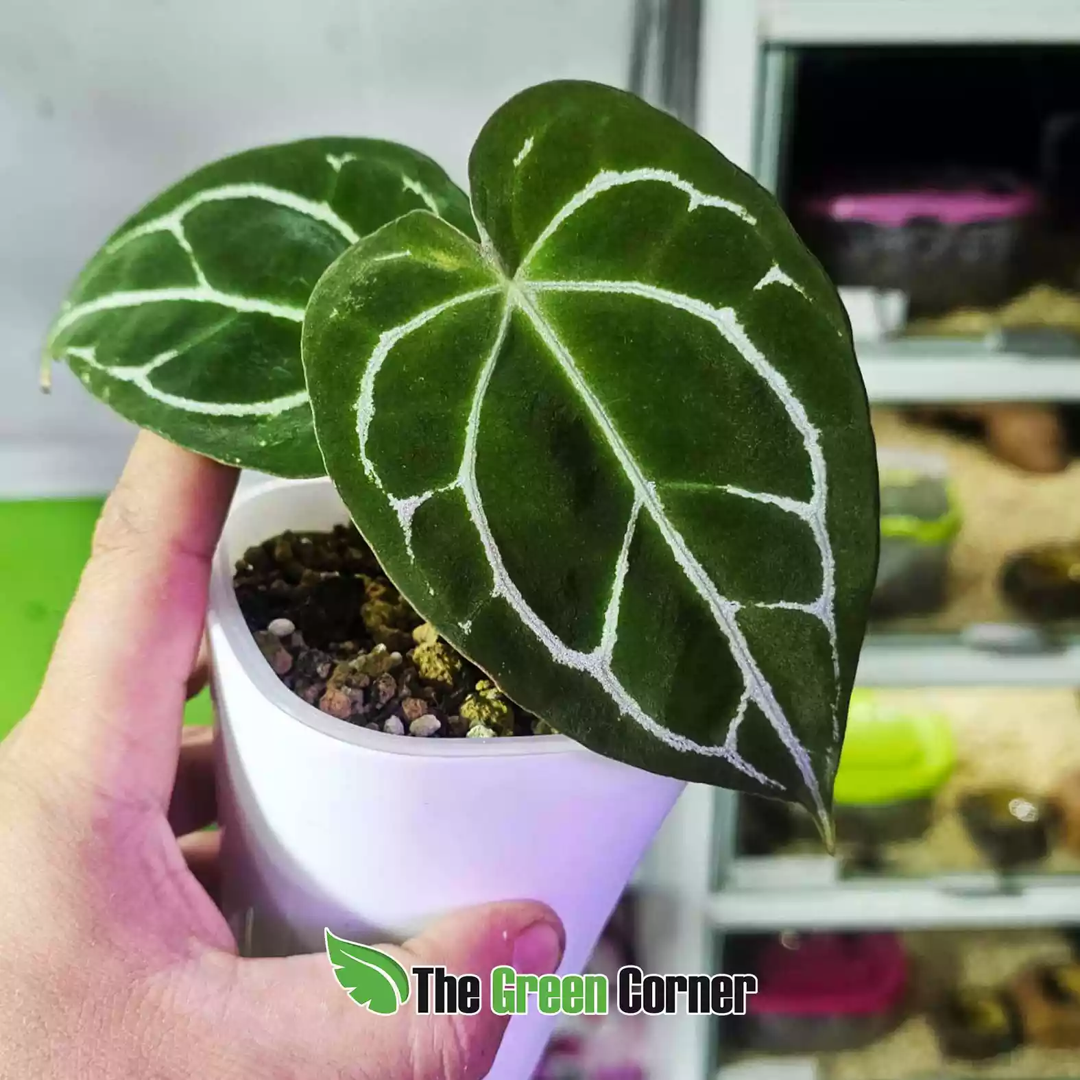 Anthurium “Nico” (Crystallinum dark x papillilaminum): El híbrido (Crystallinum dark x papillilaminum) combina lo mejor de dos de los anturios más apreciados en el mundo del coleccionismo: el brillo aterciopelado y venación plateada del Anthurium crystallinum en su forma oscura, junto con la textura gruesa y los tonos intensos del Anthurium papillilaminum. Esta mezcla da como resultado plantas de hojas grandes, densas y elegantes, que en la madurez adquieren una presencia imponente. Sus hojas muestran un verde profundo casi negro, atravesado por venas brillantes y bien definidas, creando un contraste visual único que convierte a cada ejemplar en una pieza de colección. Al ser un híbrido, presenta mayor resistencia y adaptabilidad, lo que lo hace más fácil de cultivar que sus progenitores puros. Es ideal para ambientes interiores con buena iluminación indirecta, alta humedad y temperaturas estables, donde desarrolla su máximo potencial ornamental. Requiere un sustrato aireado y drenante, basado en corteza, perlita y fibra de coco. Con los cuidados adecuados, se convierte en el centro de atención de cualquier colección de aráceas. Este híbrido no solo destaca por su rareza y belleza, sino que también representa la evolución de la hibridación en Anthurium, ofreciendo plantas únicas, vigorosas y sumamente deseadas por coleccionistas exigentes.