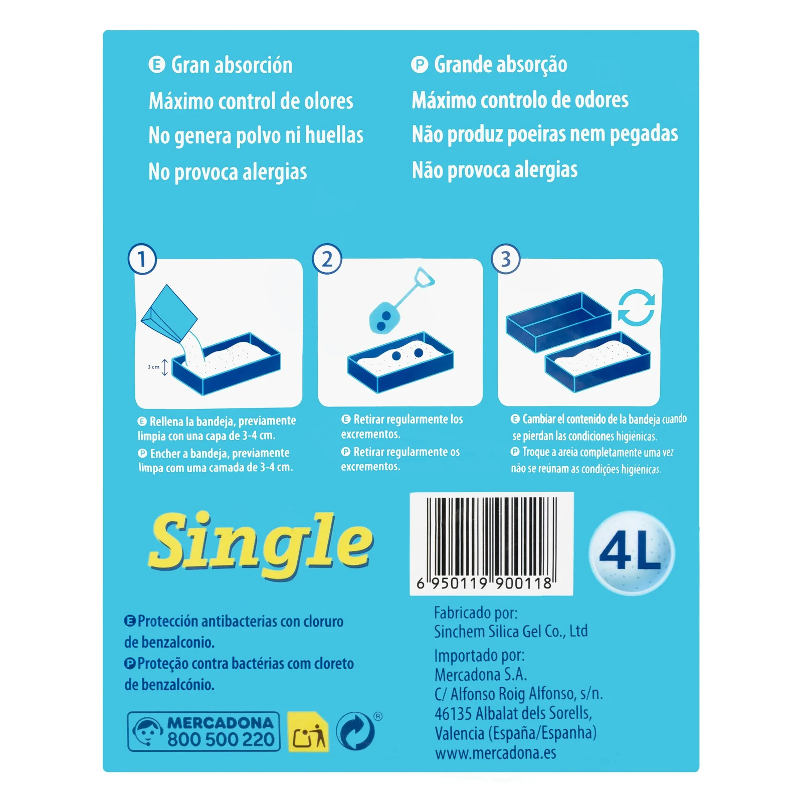 Arena para gato de perlas sílice Single