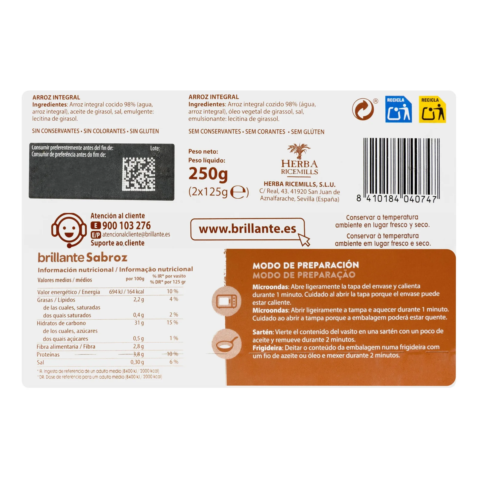 Arroz cocido integral Sabroz típico del mercado español.