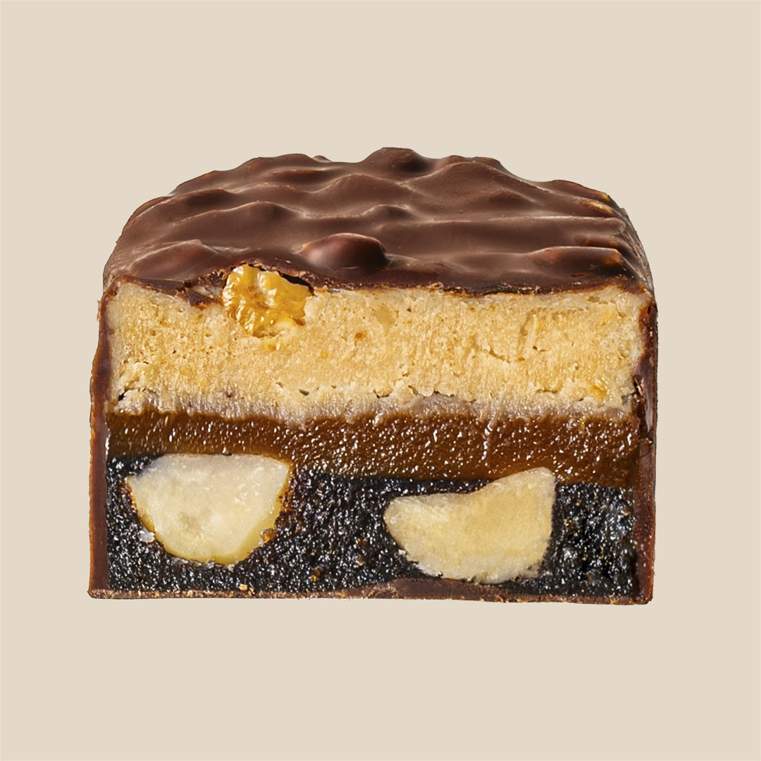 Barrita de proteínas para cualquier momento del día, una perfecta combinación de cacahuete y caramelo. Sin añadir azúcar blanco, lactosa ni gluten.