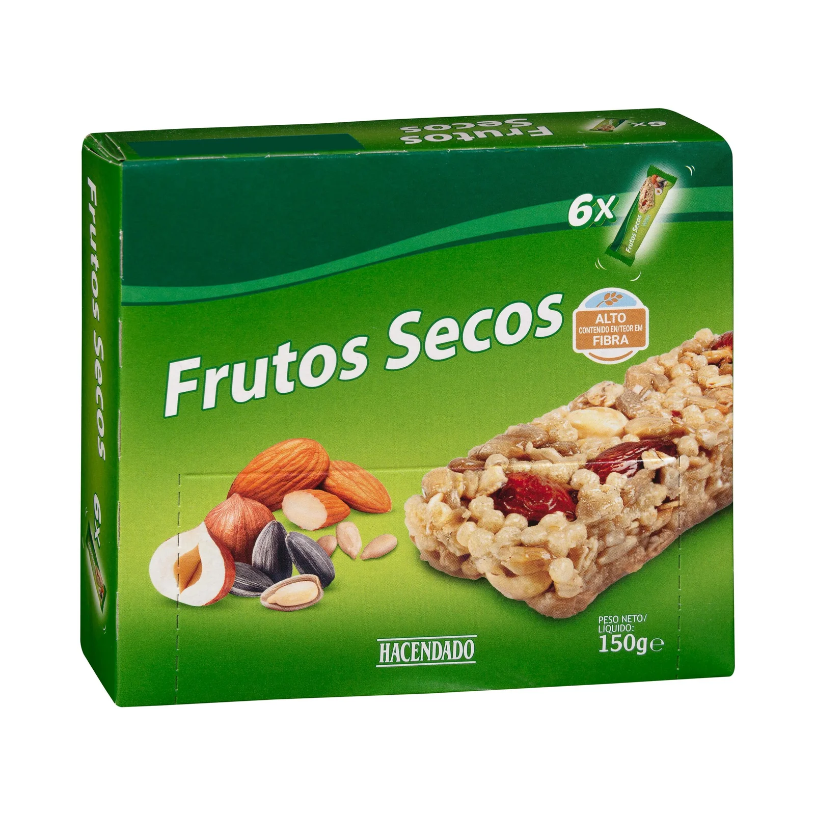 Barritas de cereales con frutos secos Hacendado, un clásico del mercado español. Forma parte de la variedad de barritas de cereales. Ideal para españoles fuera de Europa que buscan sabores de casa y para europeos que quieren disfrutar de productos auténticos de España.
