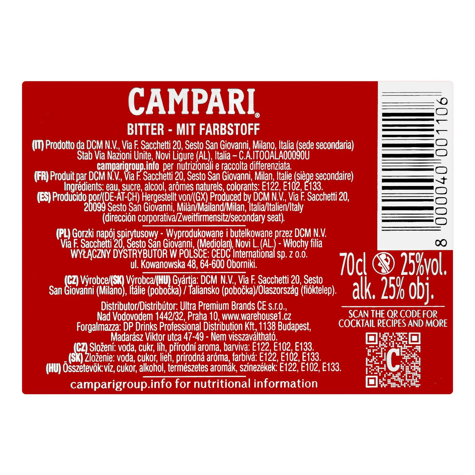 Bitter Campari es una bebida española seleccionada, pensada para españoles que viven fuera y para amantes de la gastronomía española en toda Europa. Forma parte de nuestra categoría de Bodega y Licores > Licores, destilados y cremas, ofreciendo tradición, calidad y sabor auténtico.