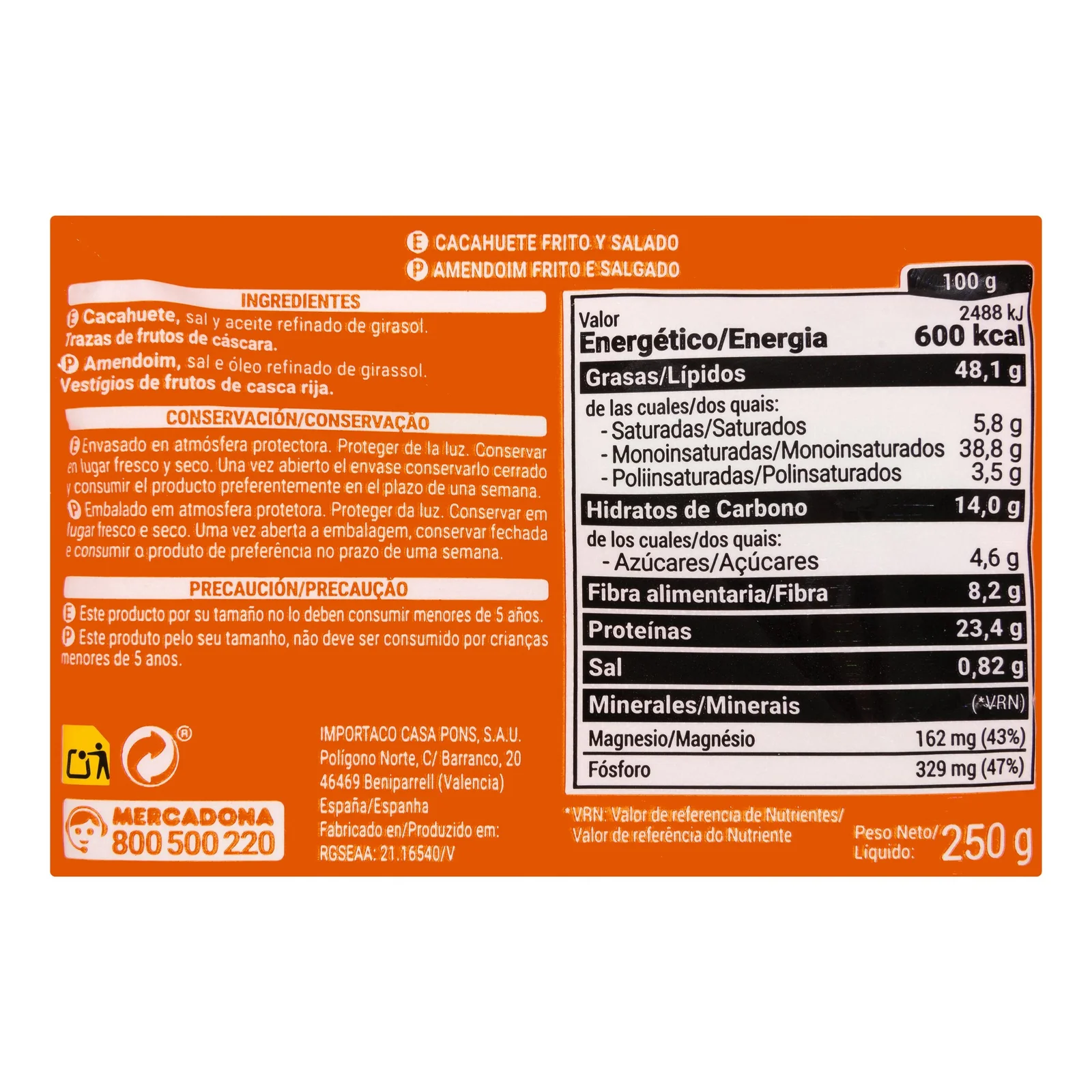 Cacahuete frito con sal pelado, ideal para disfrutar a diario como aperitivo o acompañamiento. Un clásico del mercado español.