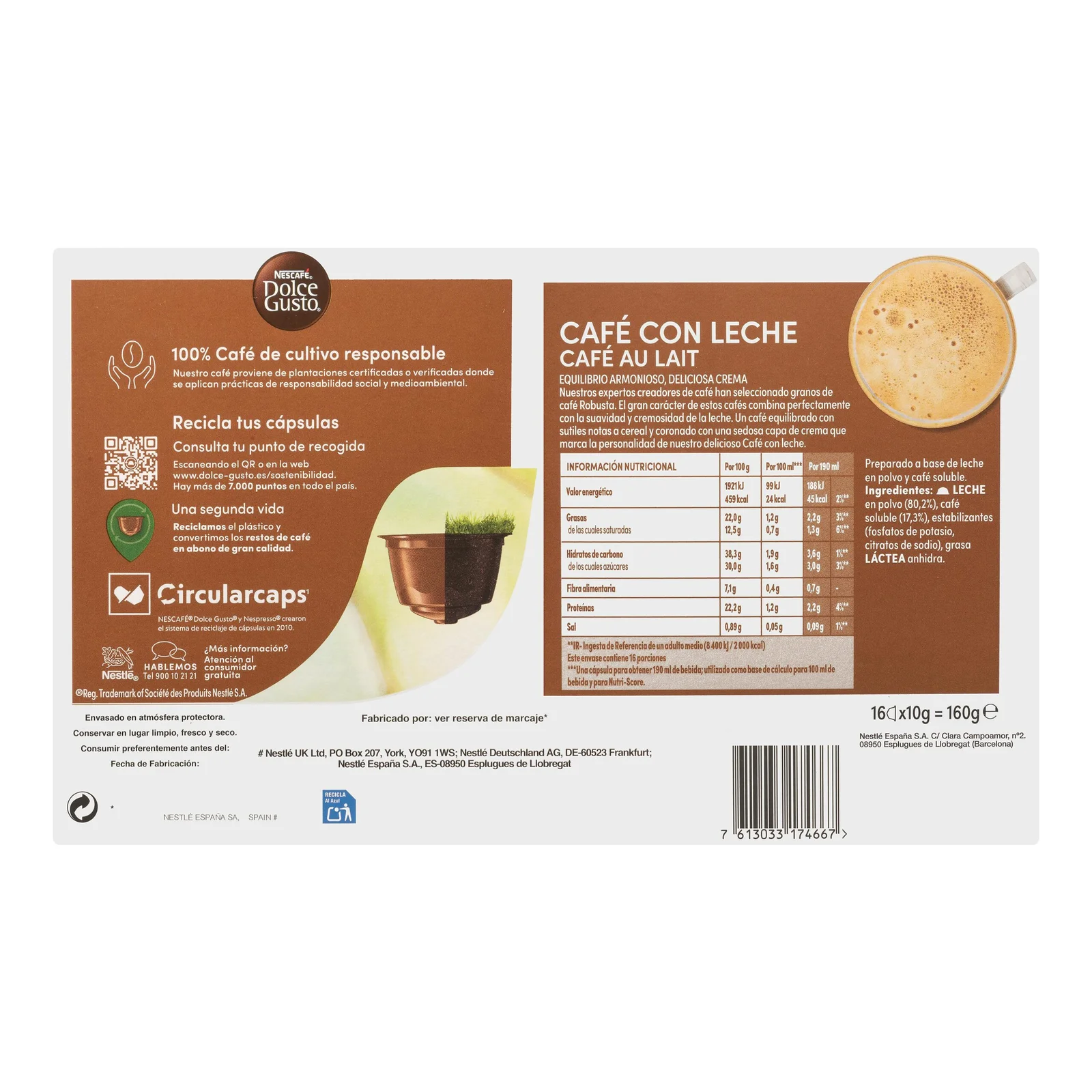 Café con leche en cápsula Dolce Gusto con auténtico sabor de España.