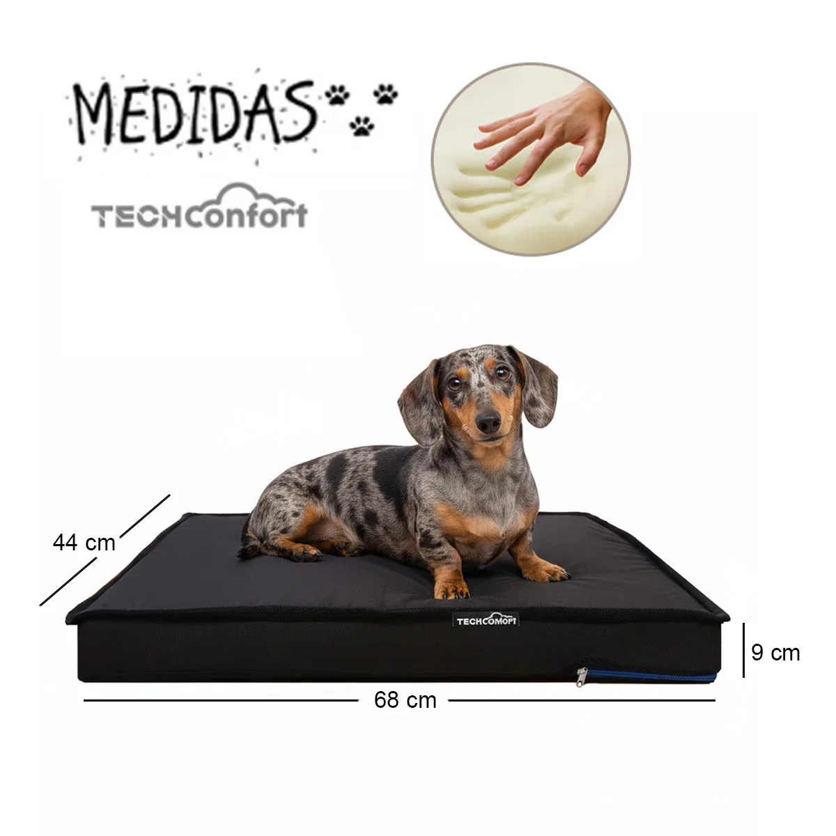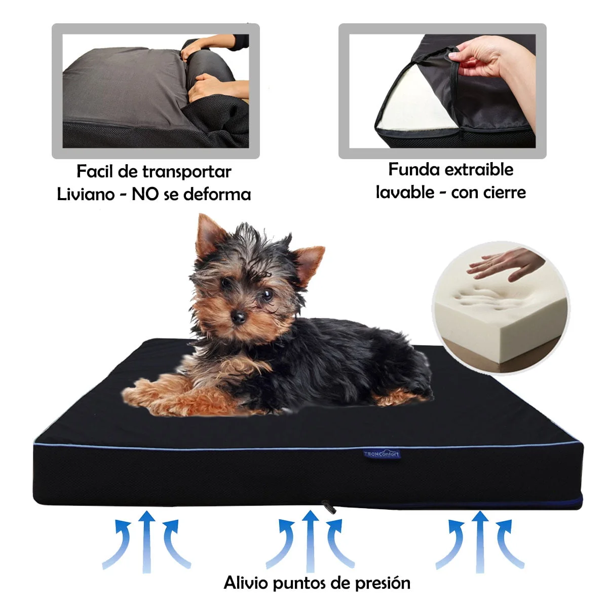 Cama colchón para mascotas, fabricada en espuma viscoelástica Memory Foam, con forro en tela antifluido color NEGRO y malla transpirable en los laterales.