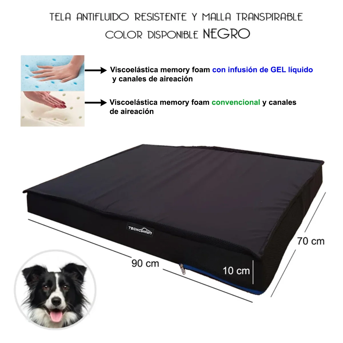 ¡Dale a tu mejor amigo el descanso que se merece! Presentamos la Cama Colchón para Mascotas Techconfort, diseñada para que tu peludo disfrute de un sueño reparador. Fabricada en espuma viscoelástica Memory Foam, con microperlas de gel y canales de aireación que maximizan la disipación de calor. Se adapta a la perfección al cuerpo de tu mascota, brindándole una comodidad excepcional. ¡Es como si estuviera durmiendo en una nube!