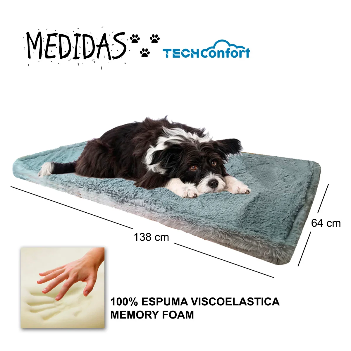 ¡Dale a tu mejor amigo el lujo que se merece! La cama para mascotas en MEMORY FOAM es la solución perfecta para esos momentos de descanso y relajación. Con 138 cm de largo x 64 cm de ancho, tu mascota podrá estirarse cómodamente y disfrutar de un sueño reparador. Fabricada en espuma viscoelástica Memory Foam, esta cama se adapta a la perfección al cuerpo de tu mascota, brindándole una comodidad excepcional. ¡Es como si estuviera durmiendo en una nube!