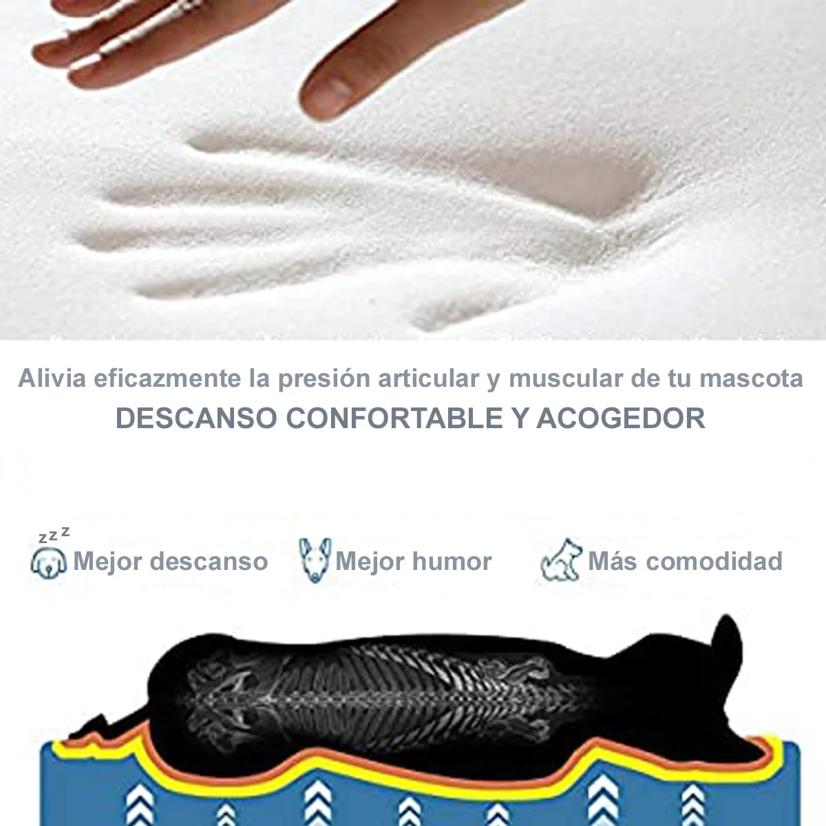 – Alivio para el dolor: Especialmente recomendada para perros con artritis u otras dolencias, asegurando un descanso libre de presión e incomodidad.