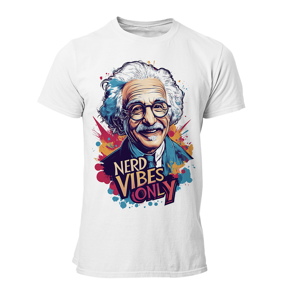 El mismísimo Albert Einstein protagoniza este diseño explosivo, con su sonrisa legendaria y el lema definitivo: Nerd Vibes Only. Porque si hay algo más atractivo que el conocimiento, aún no se ha descubierto.