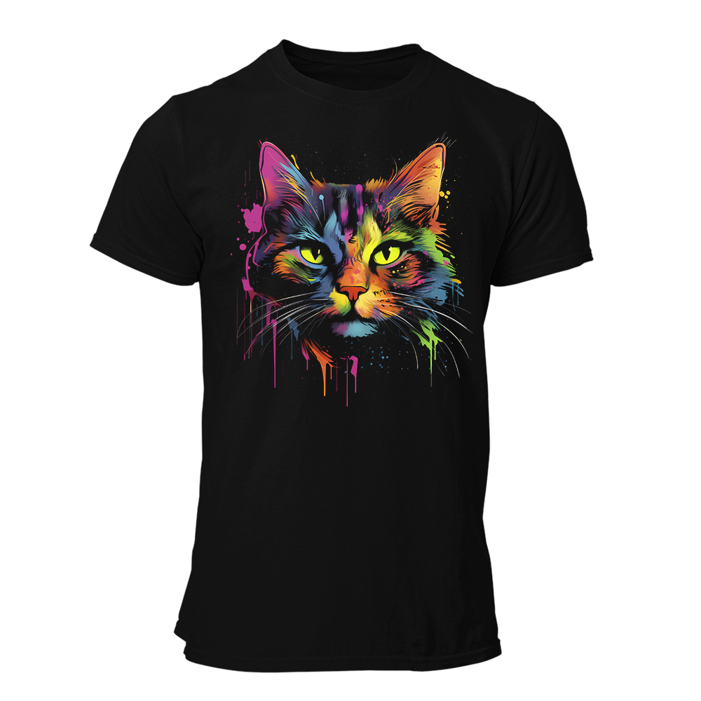 Con un diseño impresionante de un gato con manchas de tinta en un estallido de colores vibrantes, esta prenda no solo representa tu amor por los gatos, sino también tu espíritu libre y artístico.