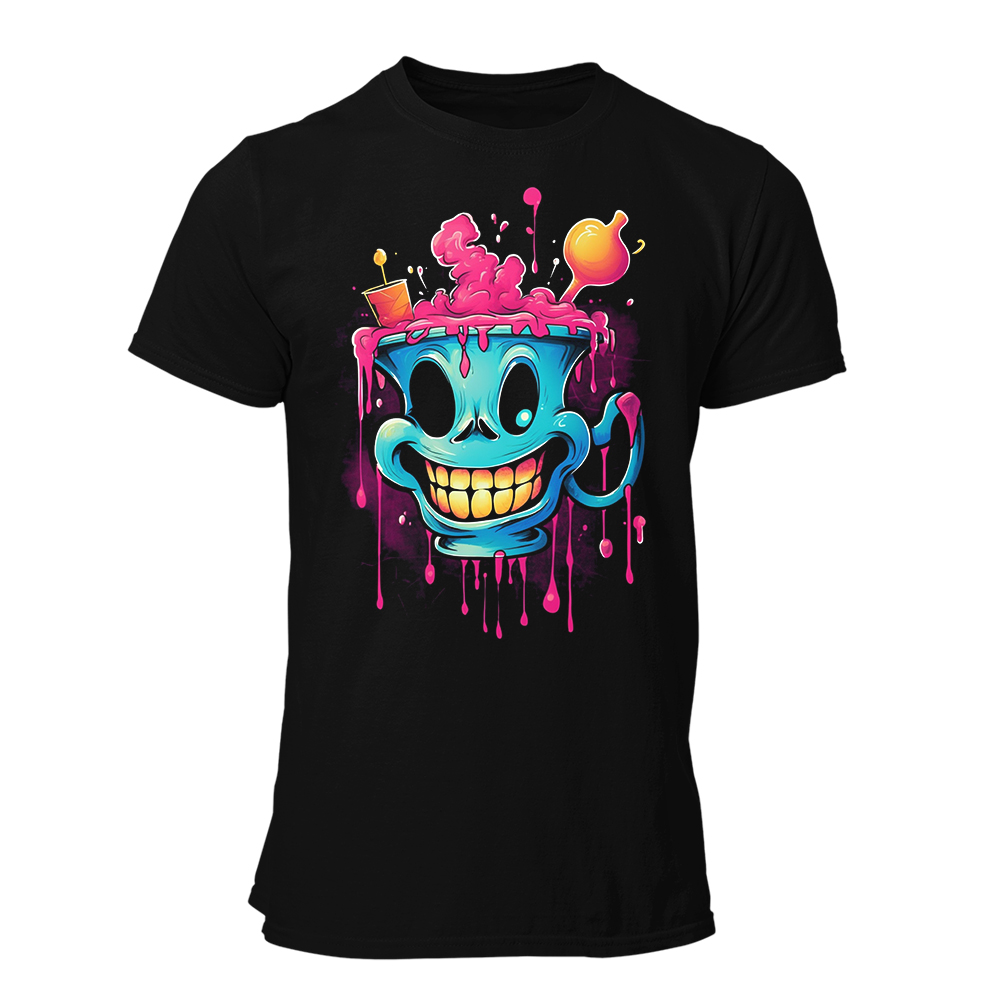Camiseta para hombre con dibujo de una taza de estilo creepy 80s.