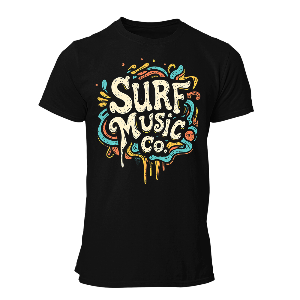 El diseño colorido de Surf Music Co. te explota en el pecho como un buen tema de los 70 mezclado con sal y adrenalina. Tiene ese aire retro-ácido que te pide carretera, olas y volumen al 11.