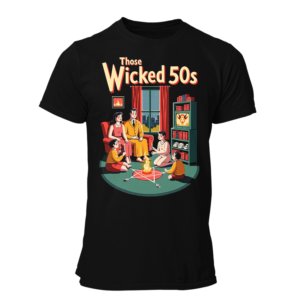 “Those Wicked 50s” no es nostalgia, es una declaración de guerra contra la corrección política. Esta camiseta grita «sí, soy raro, y lo disfruto». Si alguna vez soñaste con un club de lectura donde el libro fuera Necronomicón, esta camiseta es tu uniforme oficial.