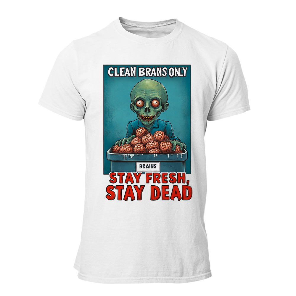 Solo cerebros frescos. Nada de sobras. Nada de ideas rancias. Esta camiseta es para los zombies gourmet, los que no se conforman con cualquier cosa y quieren calidad incluso después de muertos.