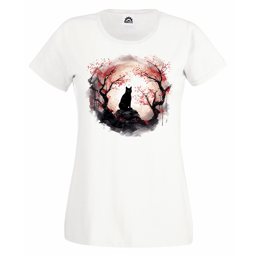 Camiseta Mujer Black cat – Sumi-E Japan trees