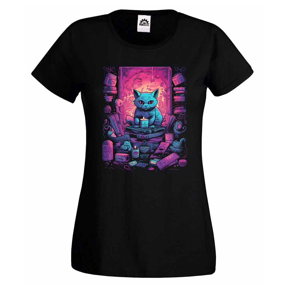Camiseta Mujer Cat – Vaporwave books room art