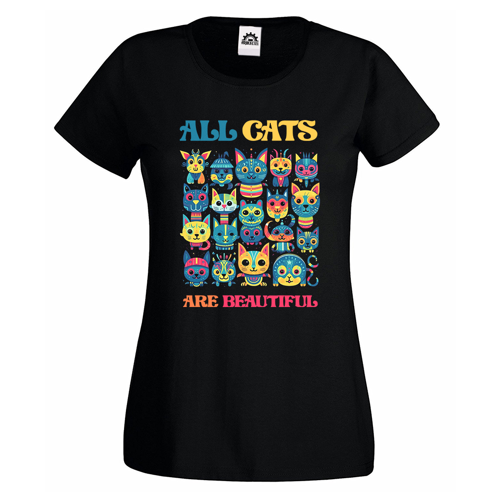 Una fusión de arte y amor por los felinos, con un diseño lleno de carisma y colores vibrantes. Perfecta para mujeres que quieren lucir algo especial, que aman los estampados llamativos y los mensajes con significado.