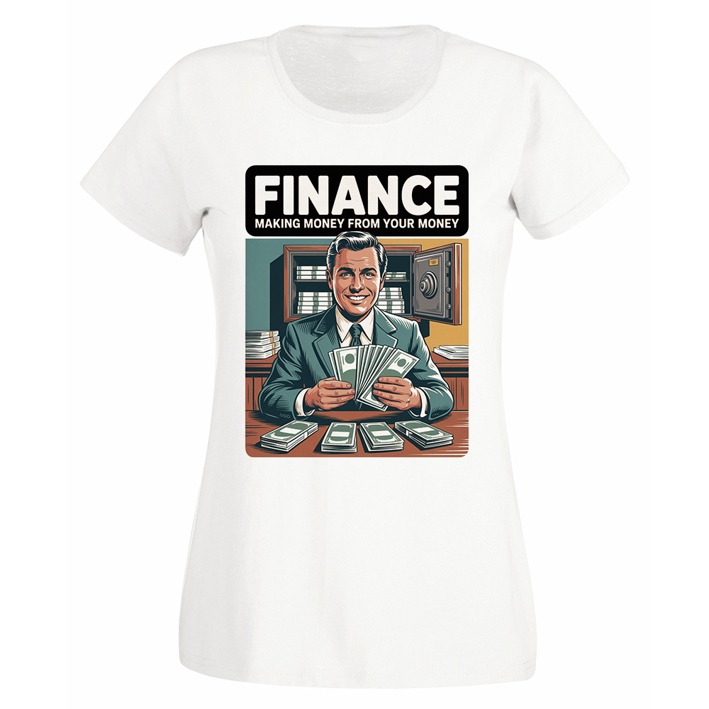 Una camiseta blanca, elegante en apariencia y mordaz en mensaje. Perfecta para mujeres que no se creen las promesas de la “libertad financiera” y saben que, muchas veces, el único que gana en la inversión… es el que cobra las comisiones.