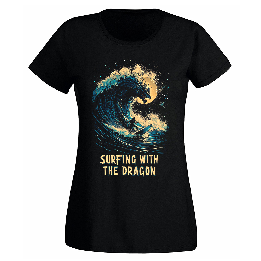 Camiseta Mujer Surf – Surfing with the dragon
