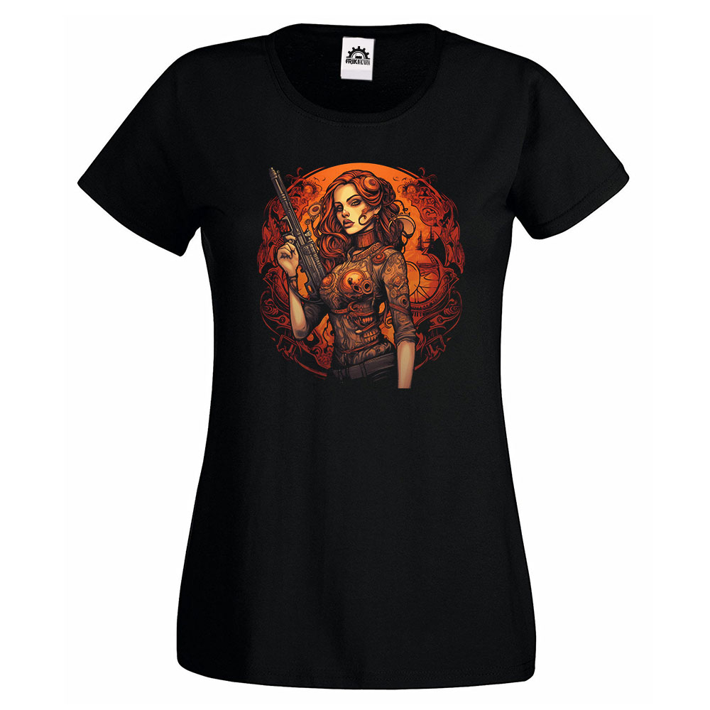 Camiseta Mujer Warrior Girl – Machine Guns Red Hair