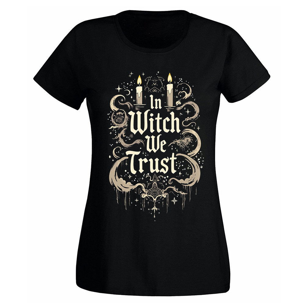 Dicen que ya nadie cree en nada… pero tú sí. Tú crees en las brujas, en el poder ancestral, en los hechizos que se lanzan con mirada y en el fuego que arde en la sangre. “Witch We Trust” es tu nueva camiseta favorita. Diseño impactante, limpio y cargado de intención. Porque una buena camiseta puede ser más poderosa que muchos discursos. Y esta, directamente, invoca.
