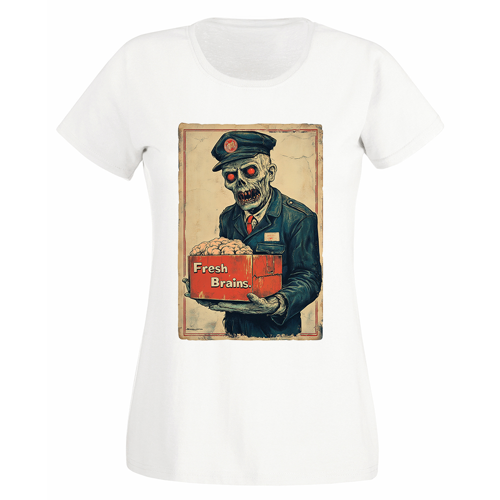 ¿Cansada de camisetas ñoñas que parecen salidas de un catálogo de yoga espiritual? Pues aquí tienes una que va directa a la yugular. “Fresh Brains Post” no es solo una camiseta, es un grito (o un gruñido, mejor dicho) de estilo y actitud. Una prenda para mujeres que se comen el mundo, literalmente.