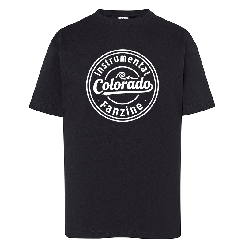 La camiseta negra del Colorado Instrumental Fanzine lleva el logo circular que define toda una cultura: la del surf instrumental hecho con pasión y sin filtros.