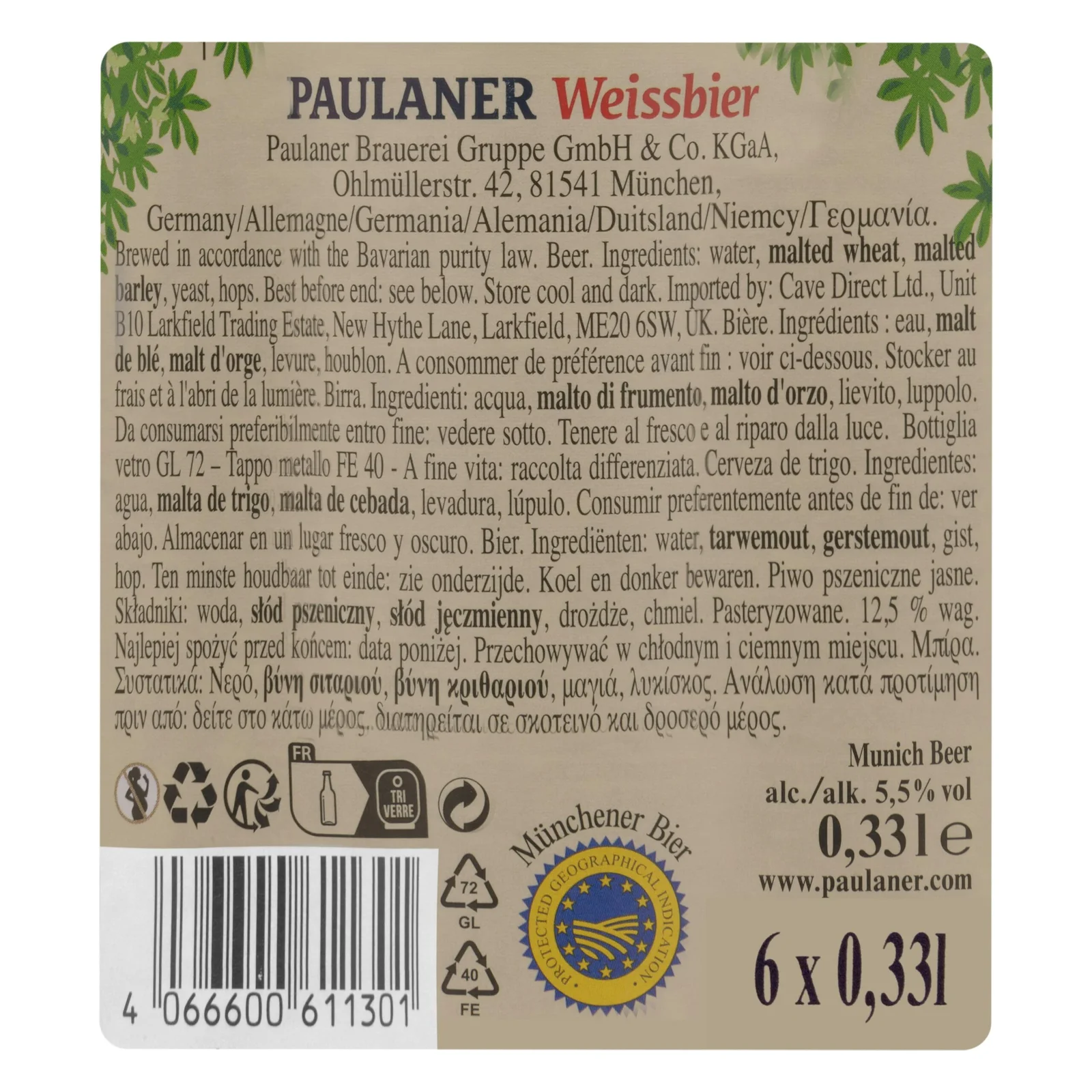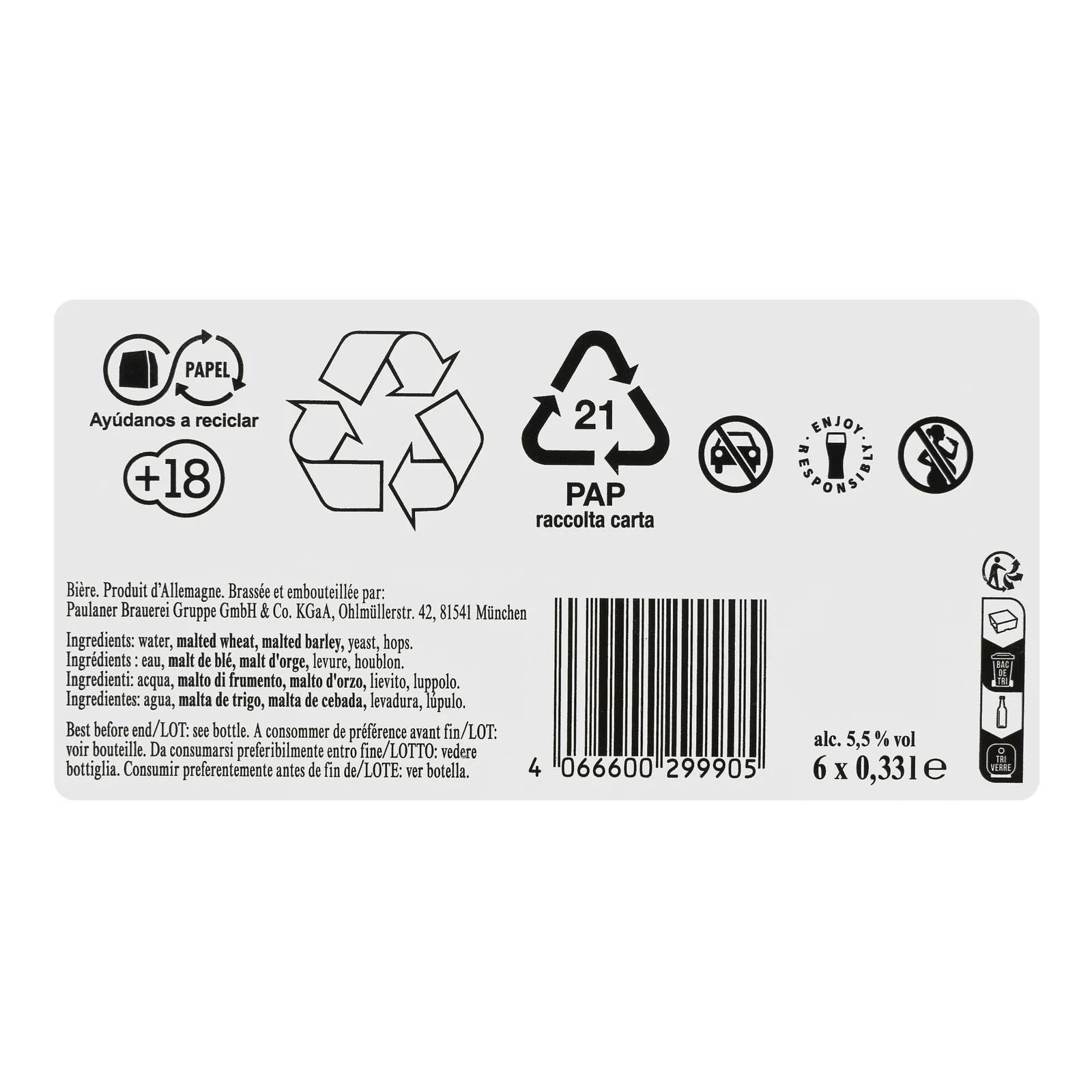 Cerveza de trigo Paulaner – producto español auténtico, ideal para quienes buscan el sabor de España en Europa.