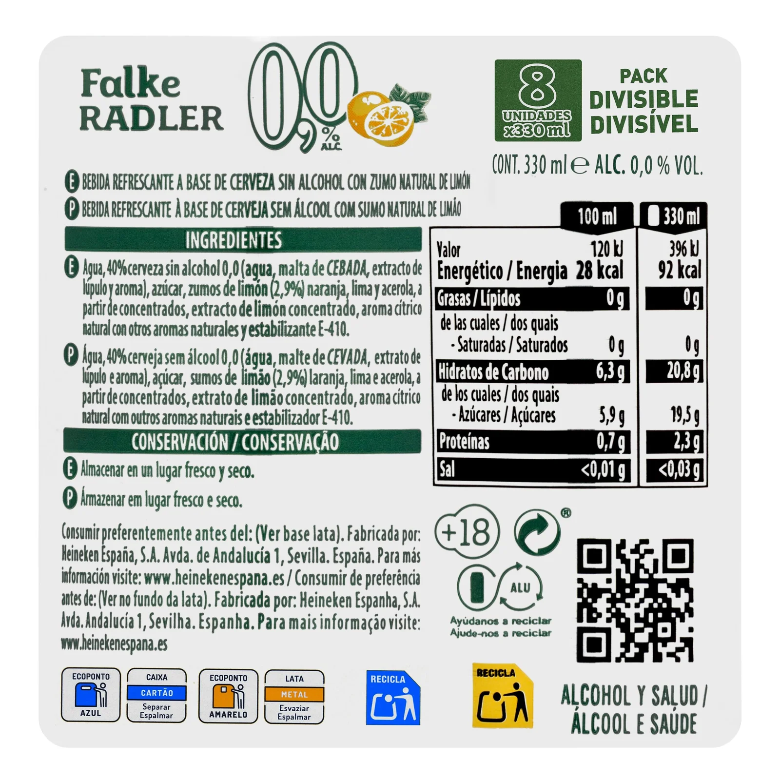 Cerveza Radler Falke 0,0% sin alcohol – producto español auténtico, ideal para quienes buscan el sabor de España en Europa.