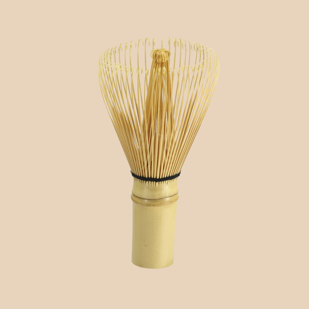 Chasen de bambú, indispensable para preparar el matcha, té verde en polvo. Es una pieza fabricada manualmente y en su parte superior se compone de finos brazos que se llaman «tate». El número de brazos hace que la textura del matcha sea el perfecto para disfrutarlo.