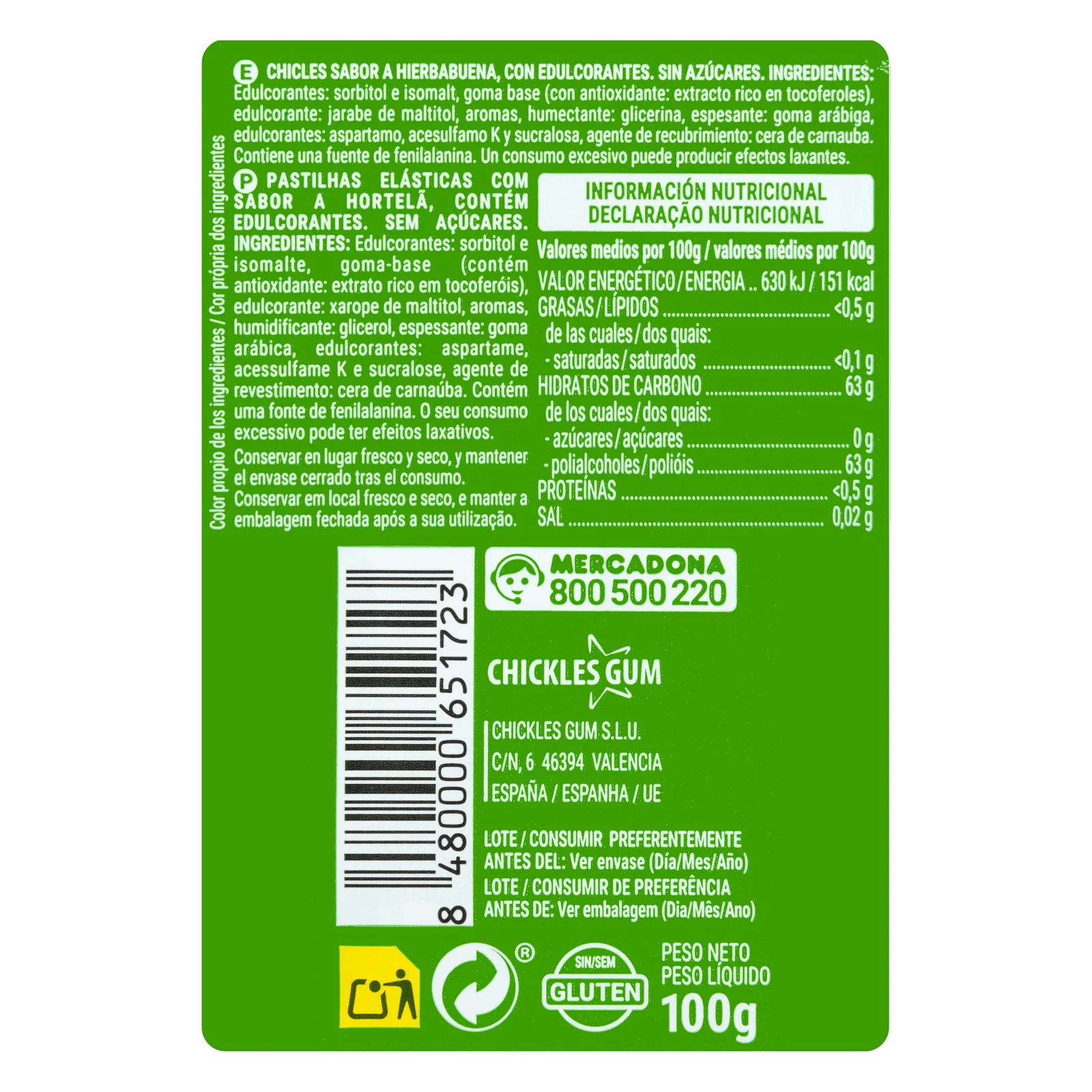 Chicles hierbabuena gragea Hacendado