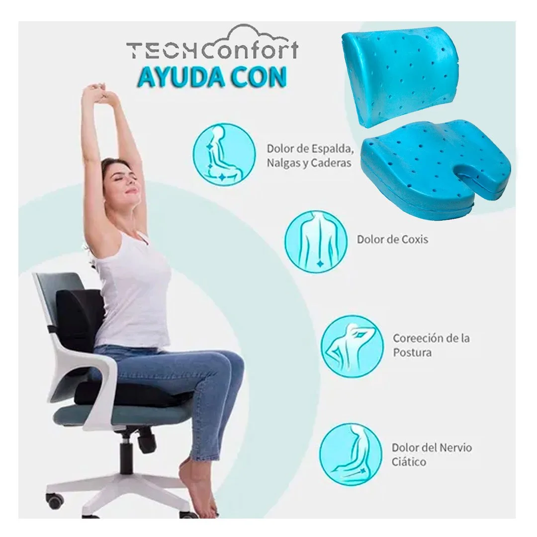 Cojin Coxis y Soporte Lumbar viscoelástica MemoryGEL con canales aireación