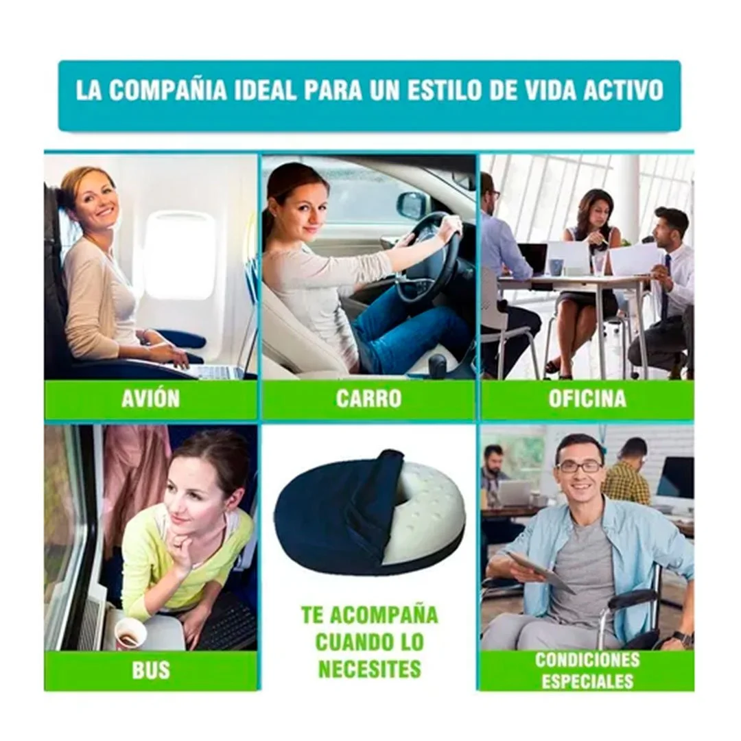 ACERCA DE ESTE PRODUCTO: Este cojín para coxis en forma de Dona, esta fabricado en espuma viscoelástica memory foam, la cual tiene la propiedad de hundirse para tomar la forma de su cuerpo y aliviar presión. No se deforma, siempre vuelve a su forma original. Especial para personas que sufren de hemorroides, dolor en la parte baja lumbar, para recuperación post-cirugía o post-parto, o para personas que pasan largas horas sentadas. Ayuda a aliviar presión en el nervio ciático, aliviar presión para personas que sufren de la próstata. Su diseño y forma tipo Dona esta pensado para la comodidad y soporte de tu parte inferior y el orificio del centro no presiona tu área del coxis. La espuma viscoelástica memory foam es antimicrobiana, por tanto, es resistente a los alérgenos, el moho y los ácaros del polvo.