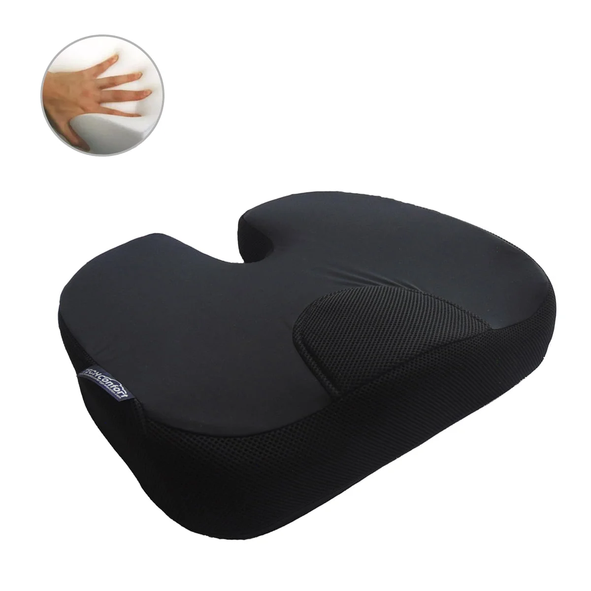 ACERCA DE ESTE PRODUCTO: El cojín para Coxis Techconfort esta fabricado en espuma viscoelástica de alto rebote, tiene capacidad de soporte de peso y a su vez alivia presión en puntos estratégicos al estar sentado por lagos periodos de tiempo. Se puede usar para mejorar la mala postura y aliviar el dolor en las piernas al conducir, mejorando su comodidad mientras conserva su densidad. Es portátil y de tamaño pequeño también lo ayuda a encontrar alivio adicional cuando viaja en avión. ¡Una solución perfecta para su silla de oficina o cocina, automóvil, camión, avión, silla de ruedas, sillas de escritorio de computadora en casa o en el trabajo, sillón reclinable, asiento de estadio, gradas y sofá! Utiliza un diseño ergonómico en forma de U para aliviar la presión en áreas estratégicas. Ayuda a aliviar los síntomas de lumbalgia, lumbar, hueso de la cola, próstata, cadera, piriforme, columna vertebral, dolor en las piernas, dolores de espalda y llagas.