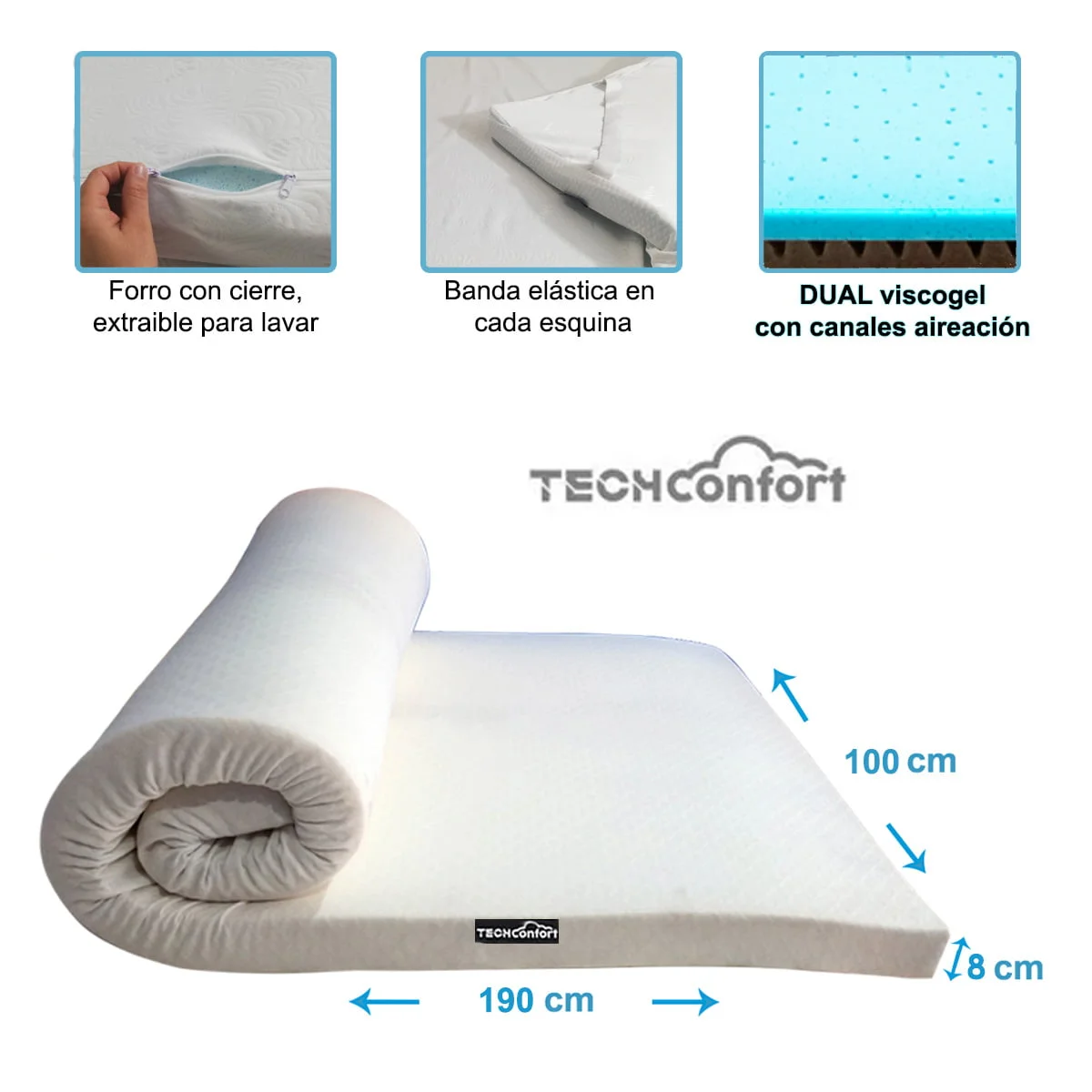 Colchoneta Topper DUAL Memory Viscogel con aireación Sencilla 100x190x8 cm (copia)