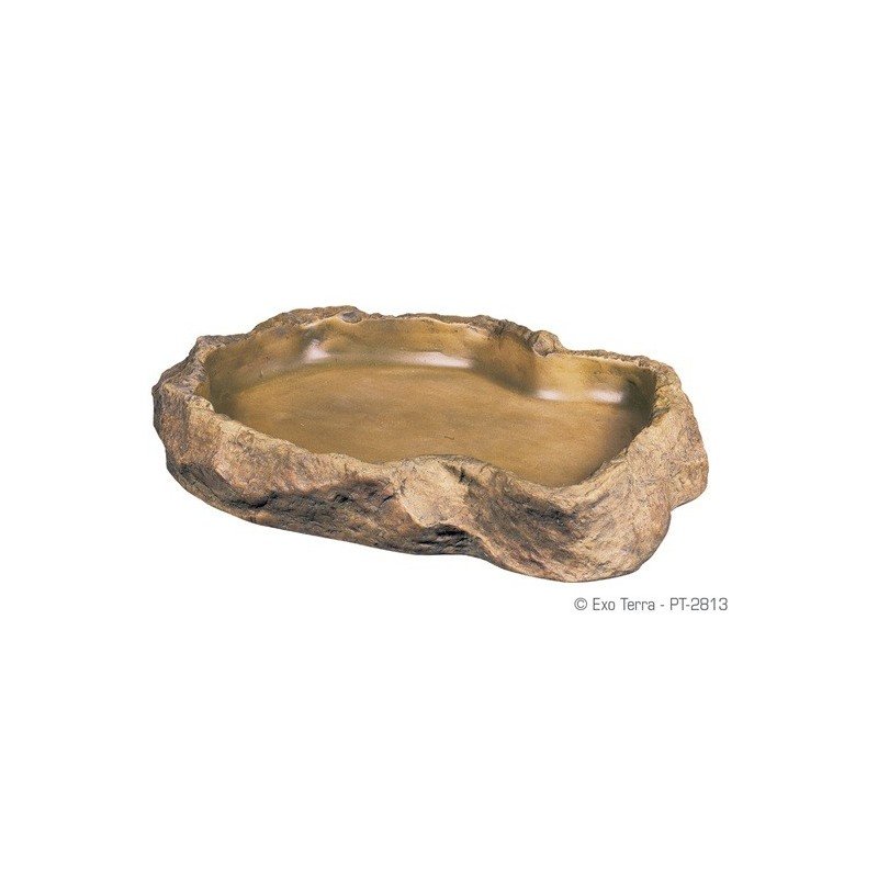 COMEDERO EXO TERRA. Los comederos de Exo Terra tienen una apariencia natural de roca en su parte externa y una suave superficie en su parte interna. Estos envases están revestidos de forma tal que impiden el desarrollo de bacterias y hace que su limpieza sea sumamente sencilla. Su color natural permite su fácil integración en terrarios desérticos, tropicales y de cualquier otro tipo. Los reptiles más pequeños, anfibios e insectos pueden salir fácilmente de estos platos gracias a los “peldaños de seguridad” que se encuentran en su interior y así evitar el ahogamiento accidental.
