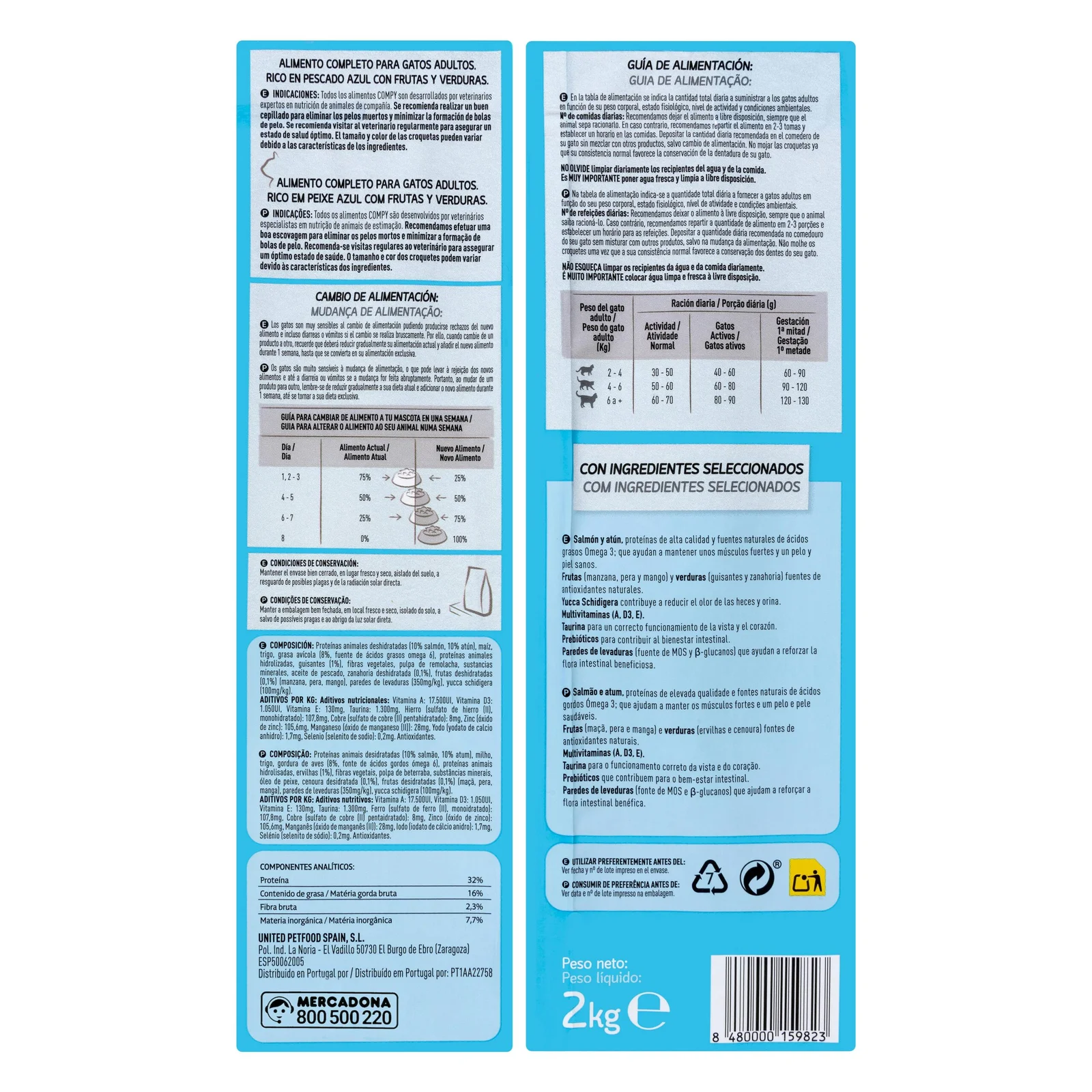 Comida gato adulto Compy con salmón, atún, frutas y verduras