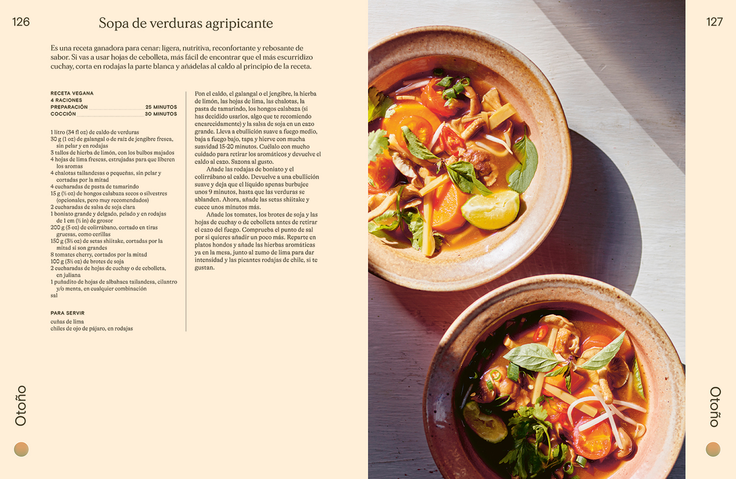 Las recetas utilizan métodos de cocción sencillos e ingredientes y especias conocidos y accesibles, perfectos para los aficionados a cocinar… y a comer. Prueba la deliciosa Ensalada de patatas nuevas aplastadas con queso azul y endivias, el aromático Ramen de pak choy, miso y setas o la reconfortante Calabaza violín a la putanesca, rica en sabores umami.