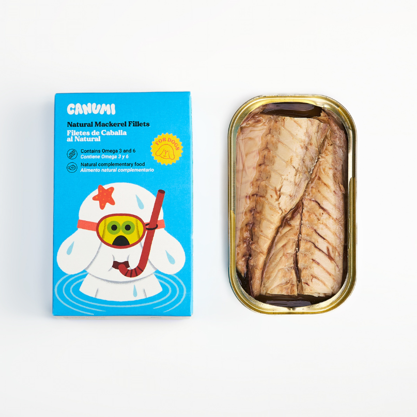 Conserva 100% natural para perros, sin sal, aditivos, conservantes ni cereales. Conservada con una película de agua que ayuda a mantener los nutrientes y propiedades. La caballa es rica en vitamina B y yodo, favoreciendo el metabolismo regulando los niveles de energía y funcionamiento celular. Mejora los estados cognitivos y ayuda a fortalecer el pelo. Beneficiosa para el sistema circulatorio, favorece el desarrollo y el buen funcionamiento muscular y óseo, soporte en la lucha contra el cáncer, ayuda en periodos de gestación y lactancia, soporte para el sistema digestivo y la glándula tiroides. Potente antioxidante. Compatible con dieta BARF.