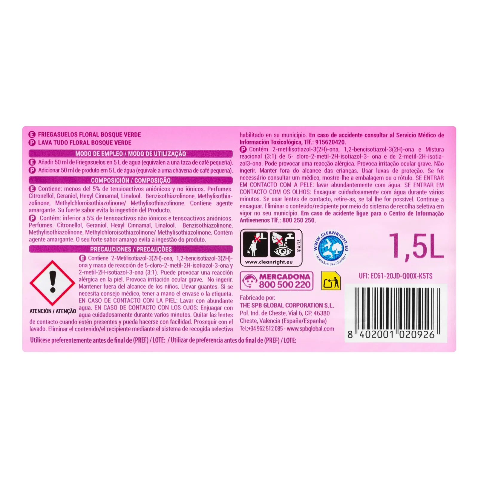 Friegasuelos Floral Bosque Verde líquido es un producto de limpieza del hogar seleccionado dentro de la sección Limpiahogar y friegasuelos de nuestro Mercado Español. Pensado para españoles que viven fuera y quieren seguir usando sus productos de siempre, y para clientes europeos que valoran la calidad y eficacia de la limpieza ‘a la española’.