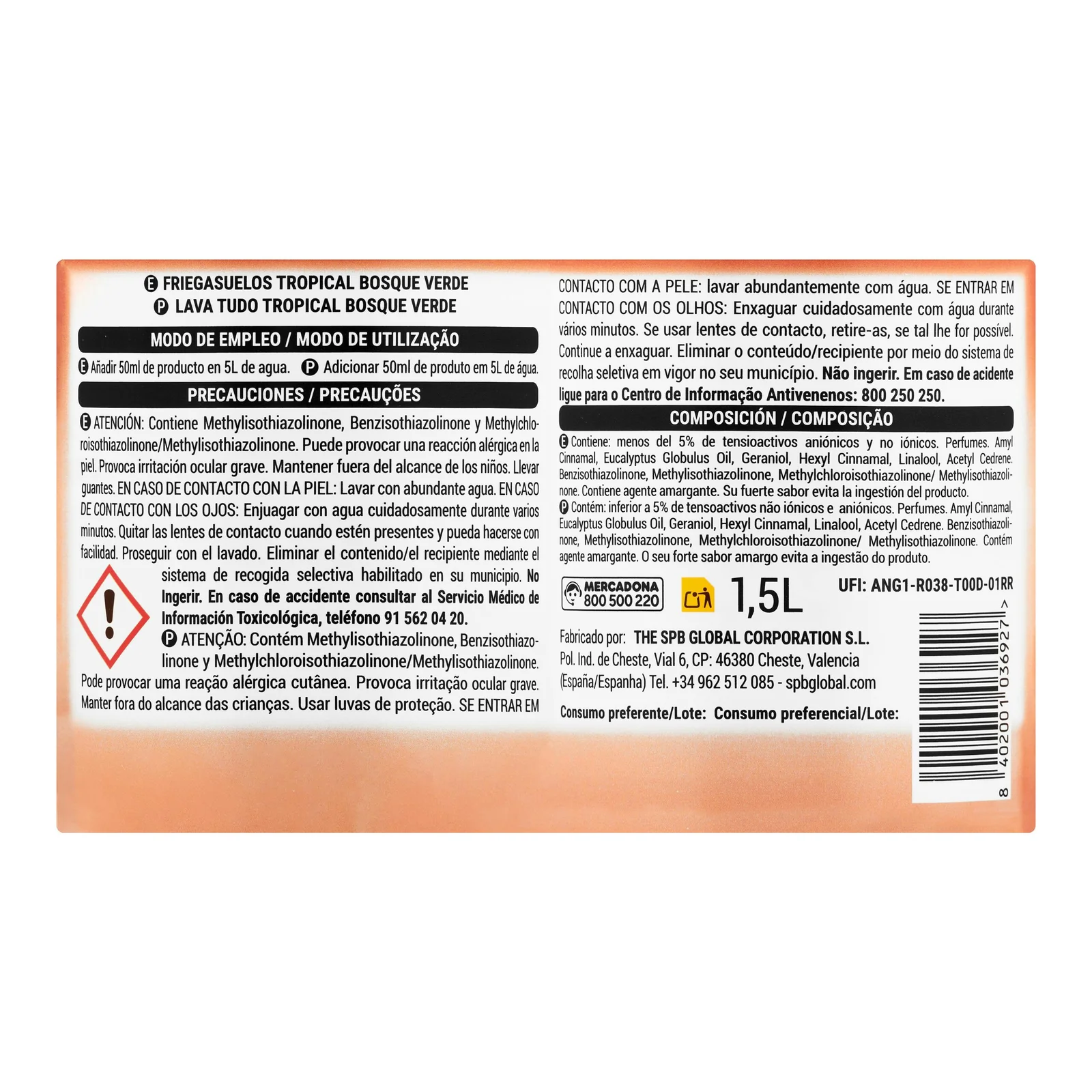 Friegasuelos Tropical Bosque Verde líquido es un producto de limpieza del hogar seleccionado dentro de la sección Limpiahogar y friegasuelos de nuestro Mercado Español. Pensado para españoles que viven fuera y quieren seguir usando sus productos de siempre, y para clientes europeos que valoran la calidad y eficacia de la limpieza ‘a la española’.