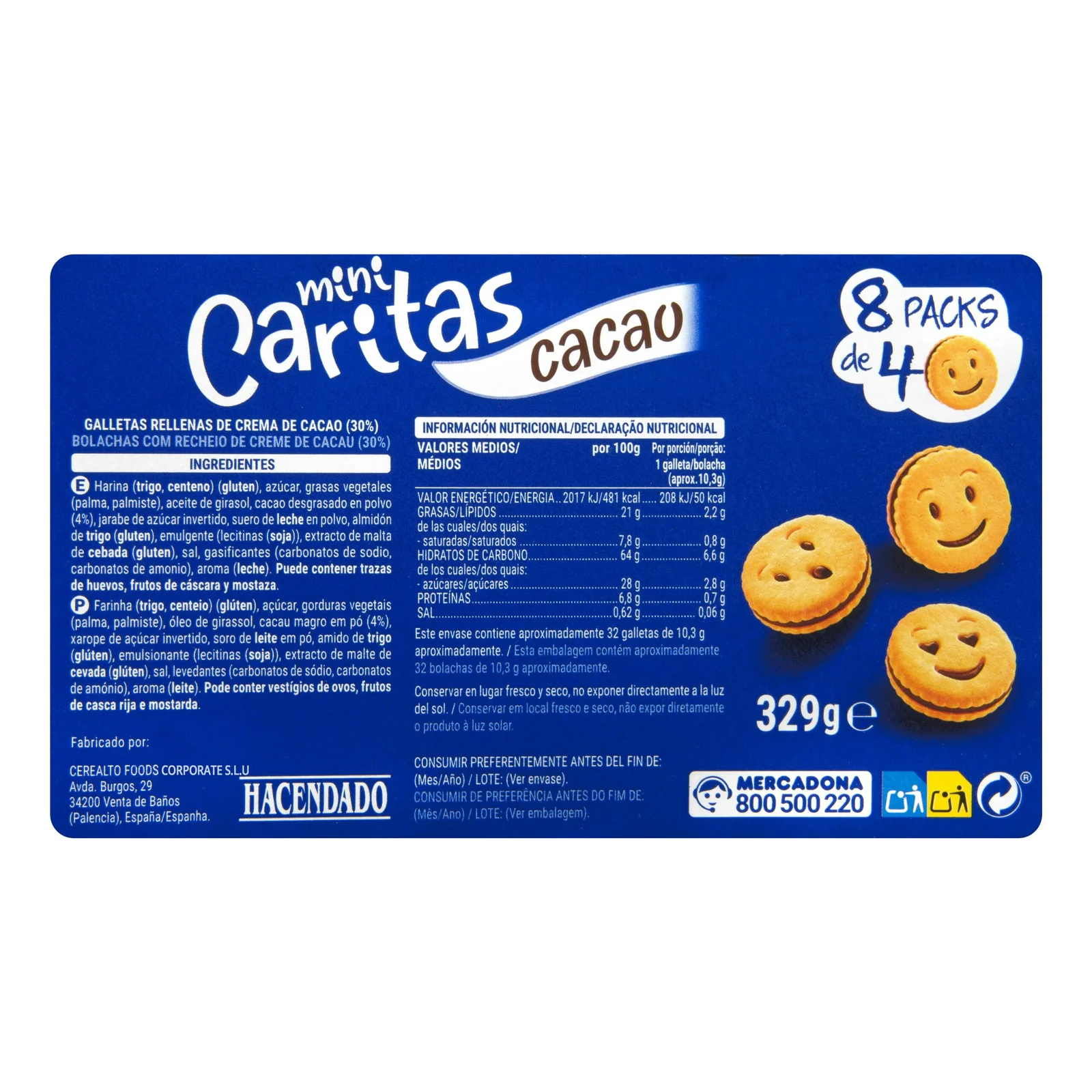 Galletas mini caritas Hacendado con crema de cacao