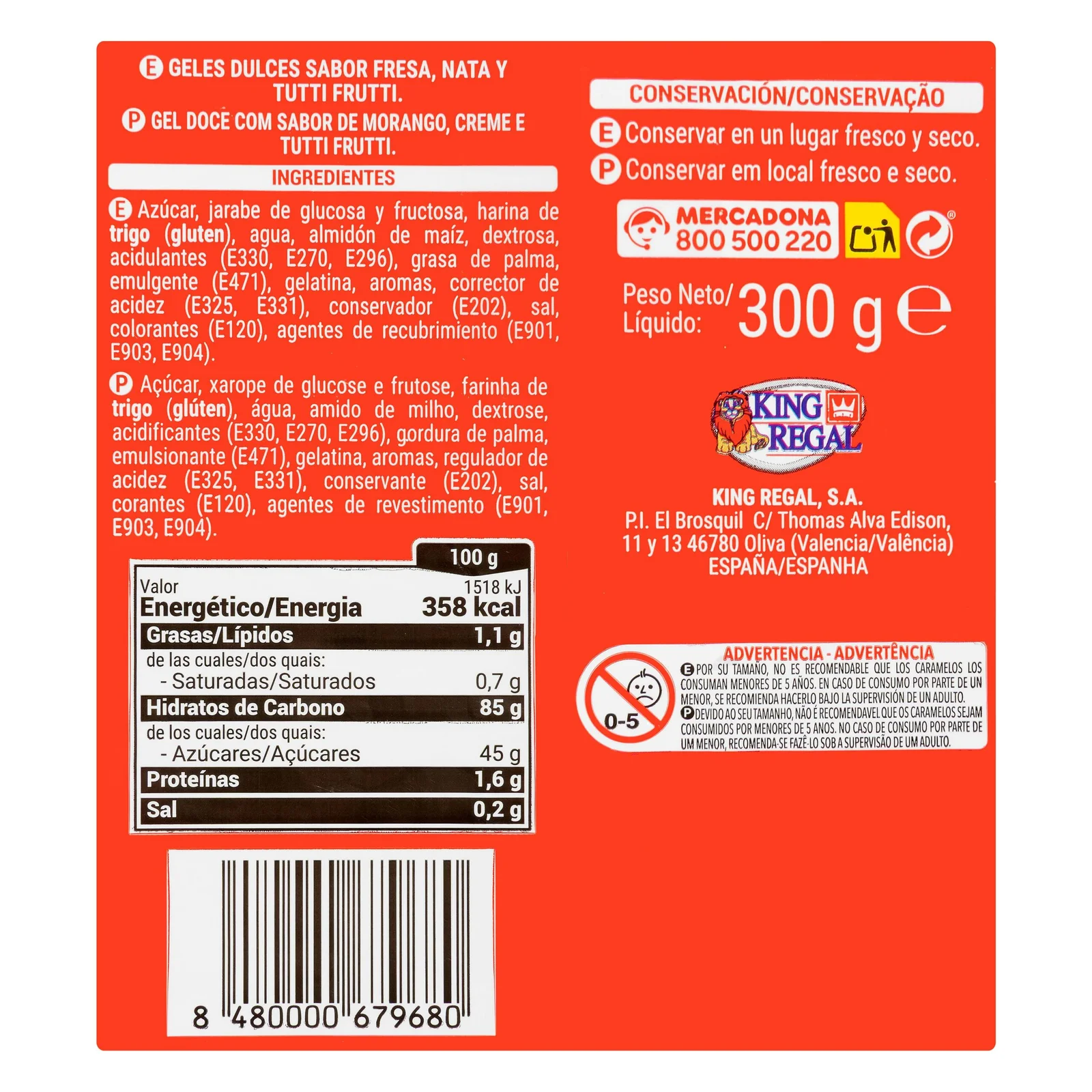 Golosinas Rega Red Mix Hacendado sabor fresa, nata y tutti frutti
