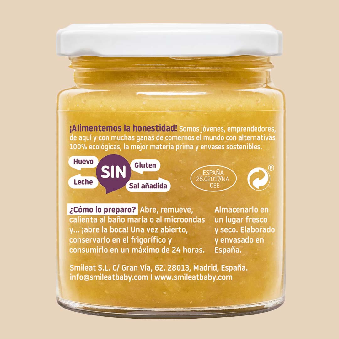 Ingredientes: Verduras (calabaza, zanahoria, patata, calabacín, cebolla), agua de cocción, alubia blanca 16%, ternera y aceite de oliva virgen extra 3%